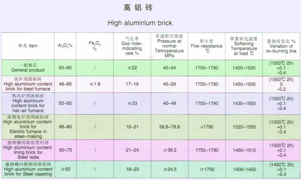 氧化鋁含量在48%以上的一種中性耐火材料。由礬土或其他氧化鋁含量較高的原料經(jīng)成型和煅燒而成。熱穩(wěn)定性高,耐火度在1770℃以上。抗渣性較好。用于砌筑煉鋼電爐、玻璃熔爐、水泥回轉(zhuǎn)爐等的襯里。